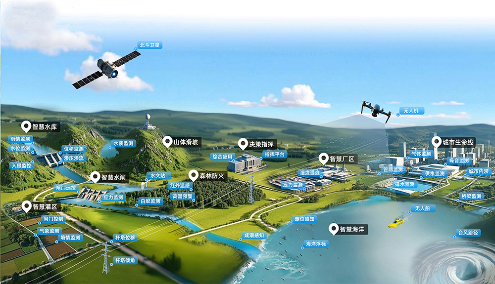感知设备:测雨雷达、水位计、流量计、GNSS位移监测、水下机器人、无人机巡检。