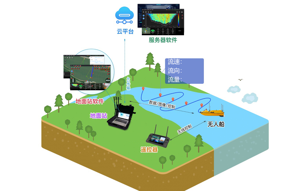 M69-DH4无人船配备北斗高精度全球定位系统和自动控制技术、内置4G/5G通信模块、高分辨率摄像头,可选搭载测深仪、走航式ADCP、侧扫声呐、水质传感器等先进设备。使得无人船能够在无... ...