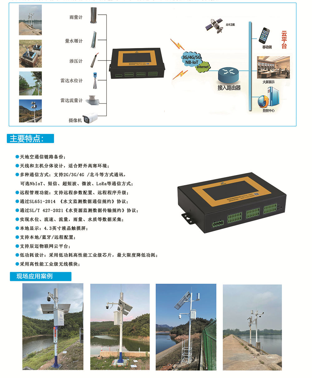 M21F-V85型北斗遥测终端机集传统水文遥测终端机功能、2G/3G/4G全网通/NB-IoT/北斗短报文无线长距离传输功能、LoRa无线短距离传输功能于一体,实现水文/水资源/地灾监测/气象等数据的采集... ...
