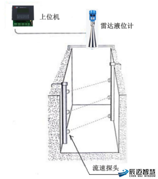 流速面积法不需修建量水建筑物,通过测量过水断面面积(实际上过水断面面积是通过测量的水位来换算求得)与断面流速来求得流量。
