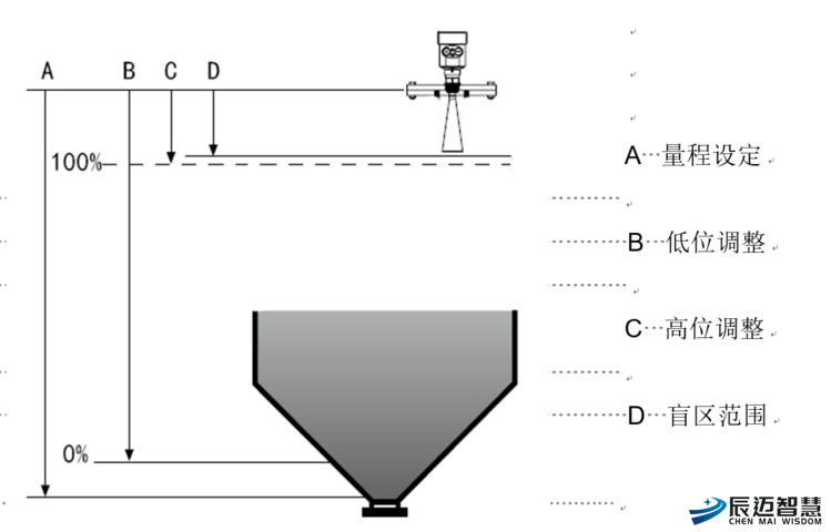 2、应在远离进出物料口和罐中心的位置安装:如果将雷达泥水位计安装于进料口上方,仪表会接收到较多的虚假反射回波,且进出物料口处的液位有波动不稳定,这些都会影响雷达泥水位计的准确测量。所以,为减少和避免雷达泥水位计受到虚假回波的影响,雷达泥水位计的传感器不能安装在罐中心也不能离罐壁很近,感器管口至罐壁的距离保持在约为罐直径的1/6为宜。