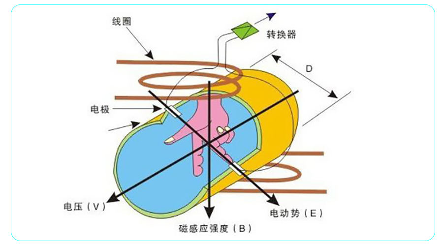 当导体在磁场中作切割磁力线运动时,在导体中会产生感应电势,感应电势的大小与导体在磁场中的有效长度及导体在磁场中作垂直于磁场方向运动的速度成正比。同理,导电流体在磁场中作垂直。