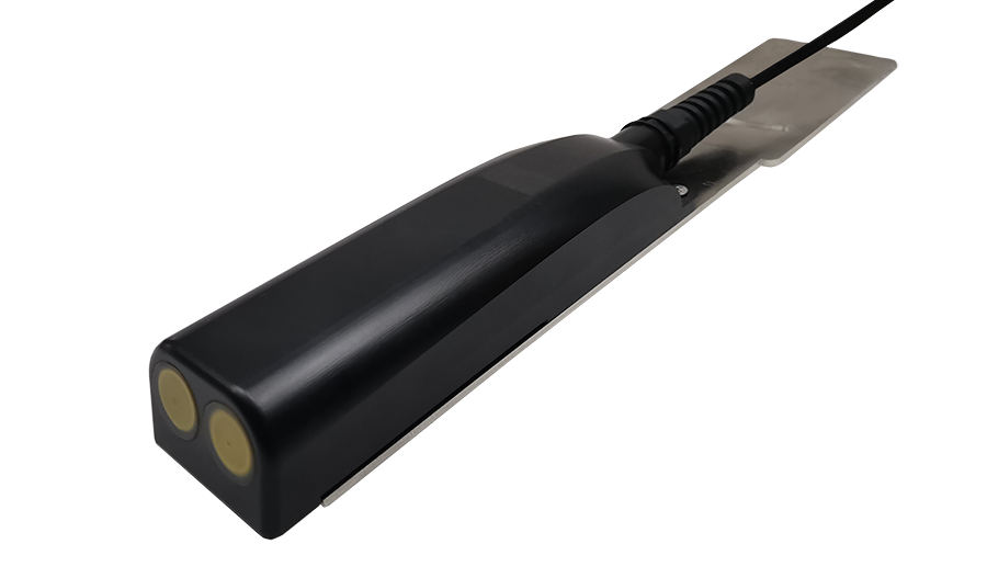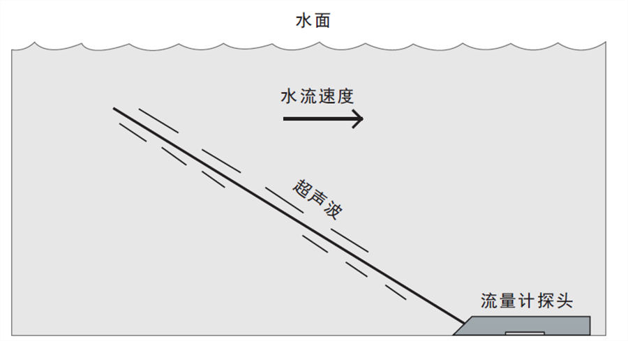 产品流速测量基于多普勒效应,探头斜向上发出一束超声波,当超声波接触到流体中的杂质或气泡时会使反射的超声波产生多普勒频移Δf, 多普勒频移Δf正比于流体流速,通过测量多普勒频移Δf即可测量出流体的流速V。