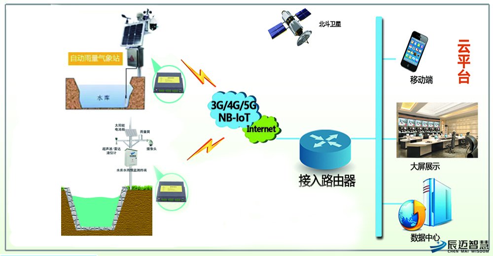 传感层:由水位传感器、雨量传感器、图像采集摄像机组成,主要的功能是实时采集现场的水位、雨量、图像等信息。