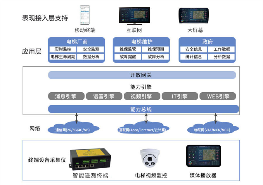◆提供用户便利:电梯安全远程监控系统还可以为用户提供便利。用户可以通过手机App或网页远程监控电梯的运行状态,了解电梯的位置和等待时间,避免长时间等待。同时,用户还可以通过系统提供的报警功能,及时报告电梯的故障,保障自身的安全。