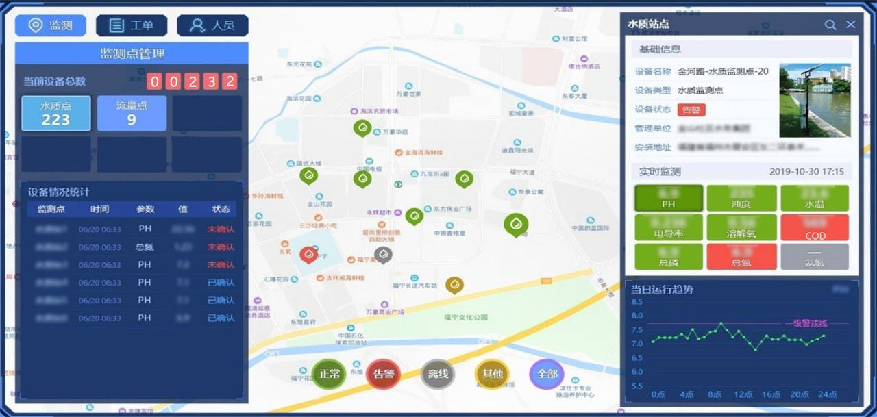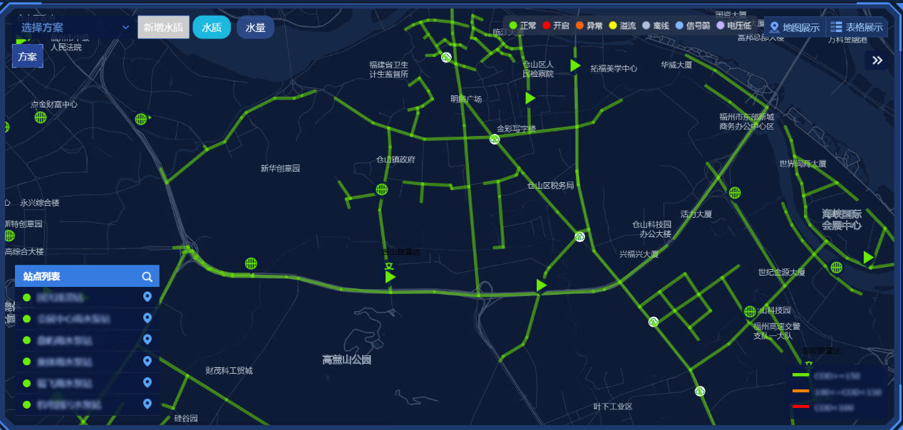 █集中监控:应用GIS的技术手段,可将整座城市的监测点囊括其中,组态云平台的分类管网拓扑,集中监控整个排水管网,获取完整数据;