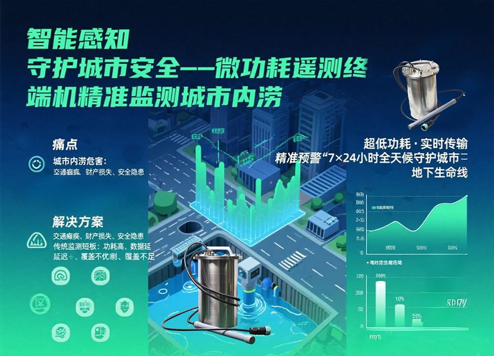 在城市内涝监测中,微功耗遥测终端机可实时监测城市内涝水位、流量等指标,通过连续监测、分析和预测,及时预警城市内涝风险。同时,它还可以与各类传感设备搭载,如雷达、卫星、地面传感器、视频监控等,实现更加全面、精准的监测。