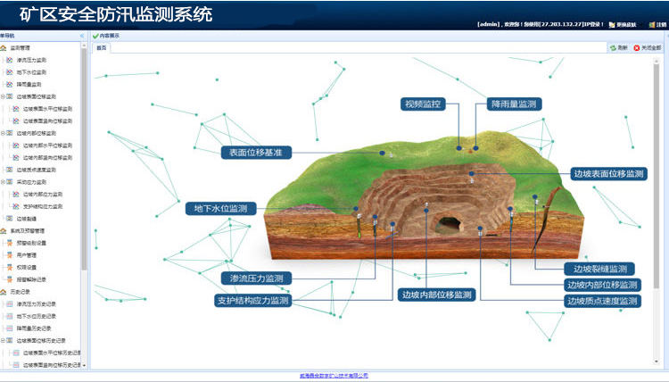 (3)平台层:数据服务云平台,依托在矿区安全防汛在线监测预警系统平台的数据,进行系统分析、提供跨区域、全时间、多层次的数据挖掘和对比,实时联动前端各大监控设备。