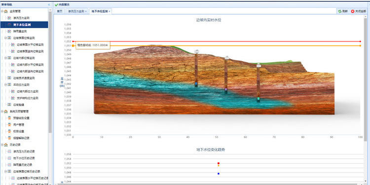 ☆ 一旦矿区出现紧急异常情况(如库水位超水位、干滩长度小于汛限长度、 坝体位移或位移速率超过警界值、浸润线异常超高、渗流量异常超高等),系统能及时发出预警信息。