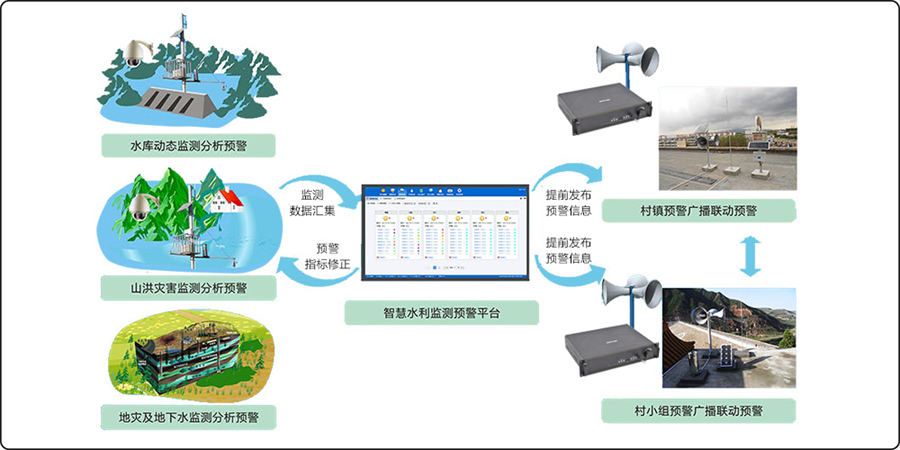 山洪灾害监测预警系统是一套具备完善预测、预报、预警能力和应急指挥能力的系统。系统主要包括水雨情监测系统、无线预警广播系统、视频会商系统组成。通过采集终端对各项水文数据进行实时监测,并将采集数据通过无线通信终端传到中心的山洪灾害监测预警平台,平台对所得的数据进行综合分析并得出预警信息,最终由无线减灾发布系统发布预警信息。提高山洪灾害监测预警预报能力和应急救灾快速反应能力。可以把地质灾害监测分为四层:感知层、网络层、平台层、应用层。