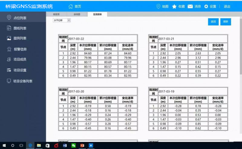 ●监测点管理:实现对桥梁点信息与监测网络信息的展示、查询与统计。
