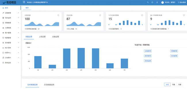 应用层:由智慧管网监测平台或第三方业务管理平台组成,实现设备管理、报警信息管理、大数据分析、水力模型分析、管网分析等功能。