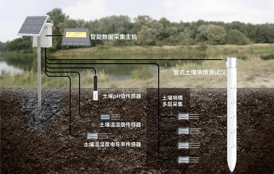 土壤墒情监测系统能够实现对土壤墒情(土壤湿度)的长时间连续监测。用户可以根据监测需要,灵活布置土壤水分传感器;也可将传感器布置在不同的深度,测量剖面土壤水分情况。系统还提供了额外的扩展能力,可根据监测需求增加对应传感器,监测土壤温度、土壤电导率、土壤PH值、地下水水位、地下水水质以及空气温度、空气湿度、光照强度、风速风向、雨量等信息,从而满足系统功能升级的需要。土壤墒情监测系统能够全面、科学、真实地反映被监测区的土壤变化,可及时、准确地提供各监测点的土壤墒情状况,为减灾抗旱提供了重要的基础信息。