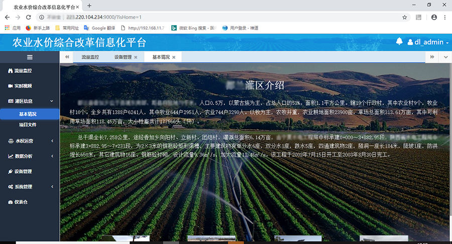 ⑩ 基础信息维护:对各类基础信息进行维护,包括行政区划信息、渠系信息、流域信息、区域信息、指定区域信息、井信息、地块信息、用水户信息、用水单位信息、用水协会信息等。