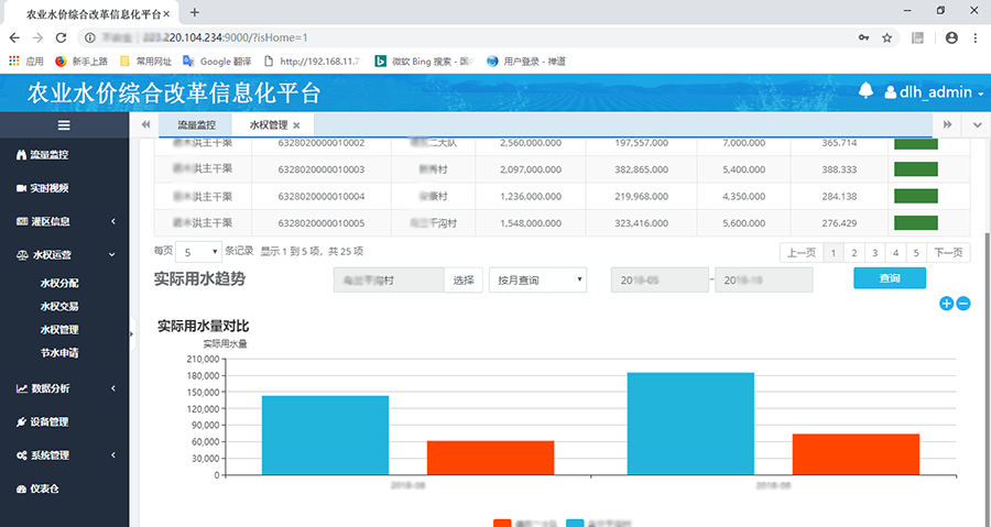 ■ 以农业水价综合改革为主线,整合设备的监测数据,并对监测数据进行统一分析,以图表和列表相结合的形式进行展示,为用户定制阶梯水价、水权交易、水权分配和进行补贴奖励提供有效依据。
