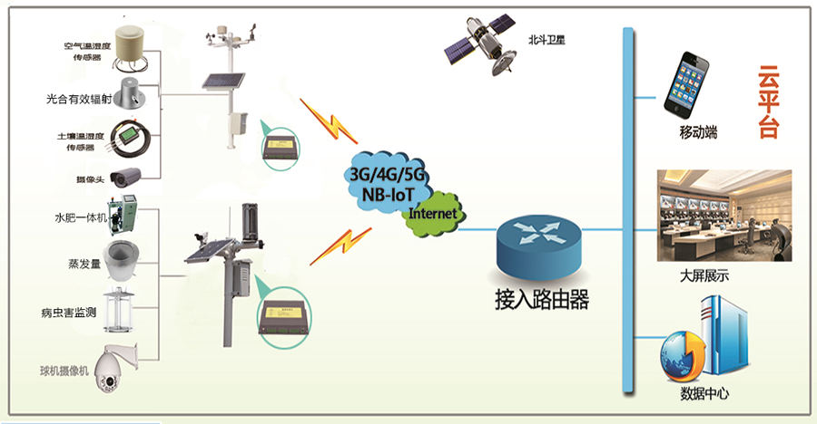 生态环境在线监测系统可通过传感器设备,例如在线实时温湿度、光照度等数值、土壤环境、空气质量、土壤水分等参数的变化情况。