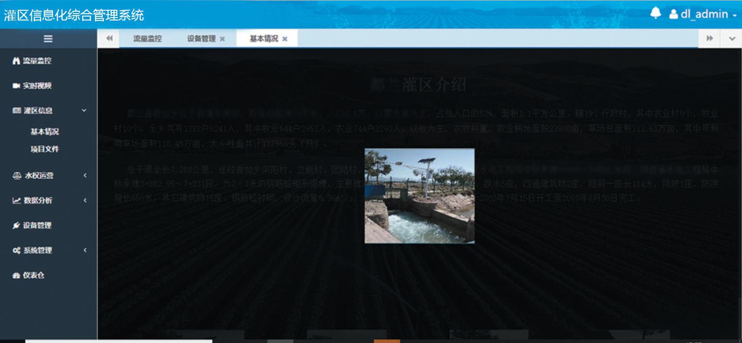 智慧灌区信息化综合管理系统是智慧为灌区信息化管理专门设计的软件,它对水雨情、地下水、墒情、气象、明渠流量、用水量、图像监测信息进行采集与处理,为灌区管理单位提供准确、及时的数据查询、统计分析,实现灌区渠道水情实时测报、水量计量自动化、水闸自动化控制、泵站及泵站群远程监控、水资源调配自动化、水质动态监测等功能,有效提高灌区管理的快速反应能力、科学决策水平和管理效率。也为灌区水资源的管理提供了基础、有效的数据,提高了企业的管理水平和生产效率。