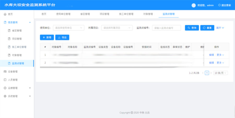 系统配有GIS地图,可显示当前所有监测站点的分布地理位置,方便管理者确定监测站位置,如发生报警事件,可第一时间定位站点位置。