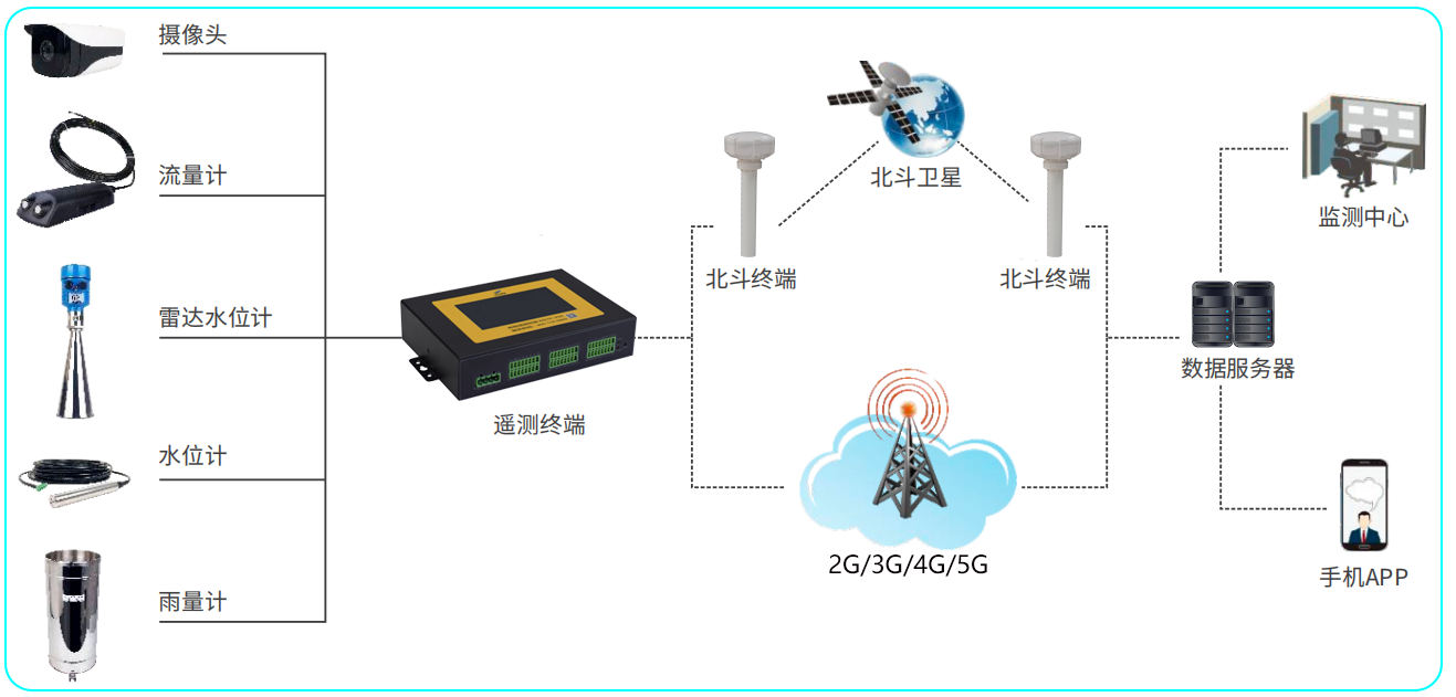 ■各职能部门之间数据通信在局域网内完成;各监测站点与管理部门调度中心之间采用2G\3G\4G\5G\NB-IoT 等无线网络通信。